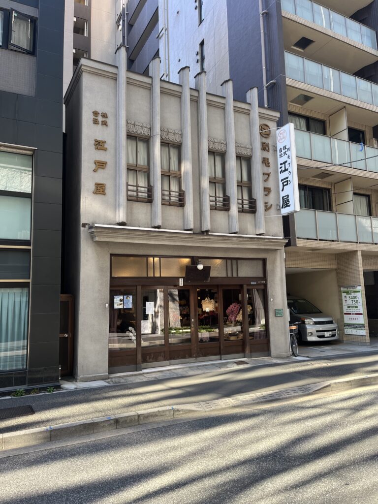 耕書堂跡を離れ、私は日本橋の中心部へと歩を進めた。移動中、ふと目に留まったのは「江戸屋」の看板。